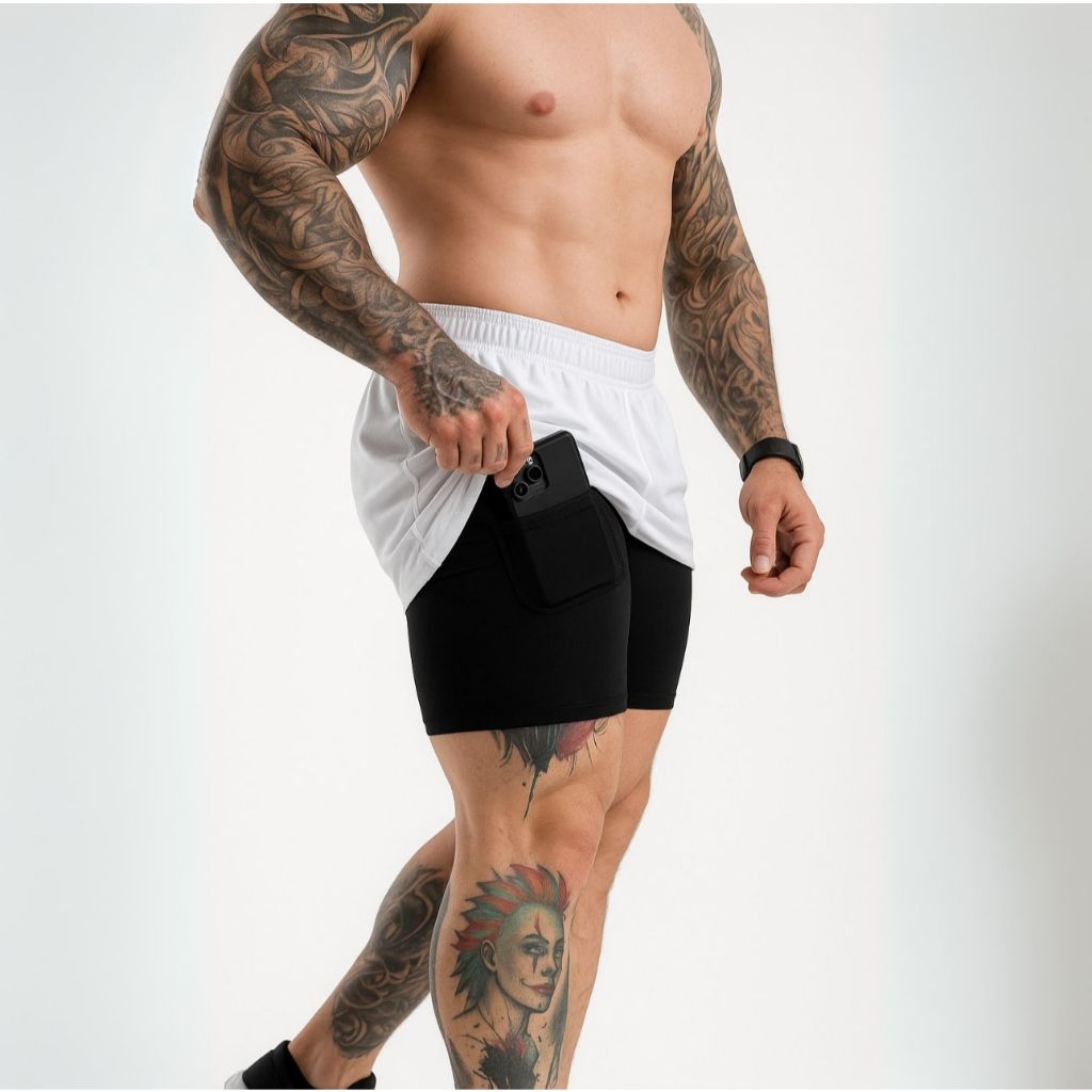 ● Design 2 em 1: Short externo leve + short interno de especificações, garantindo suporte e liberdade.