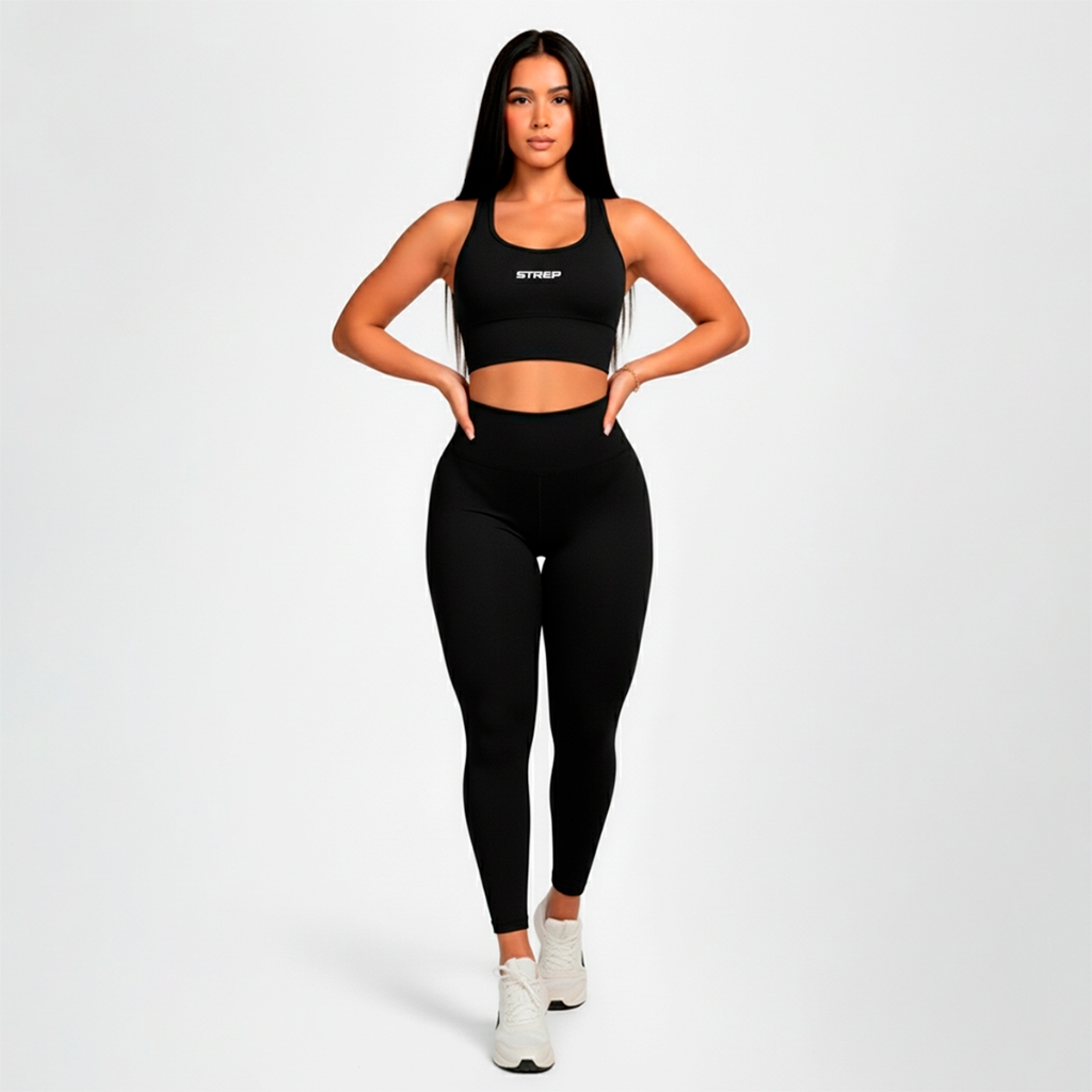 Conjunto Completo: Top + Legging com acabamento reforçado.